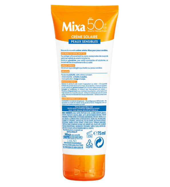 Acheter ou commander Mixa Expert Peau Sensible – Crème Solaire Tolérance Optimale SPF50 – 75ml au meilleur prix promo à Casablanca et partout au Maroc.