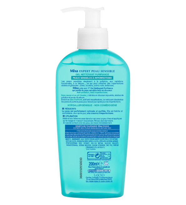 Acheter ou commander Mixa Expert Peau Sensible – Gel Nettoyant Purifiance Anti-Imperfections – 200ml au meilleur prix promo à Casablanca et partout au Maroc.