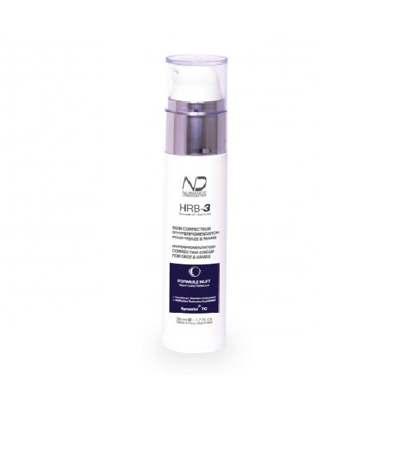 Le Soin Correcteur d’Hyperpigmentation HRB-3 Formule Nuit associe un puissant actif antioxydant et réparateur, le Synastol® TC (Extrait du fruit Haritaki) ajoutant une activité antipéroxidase qui prend effet pendant la nuit.