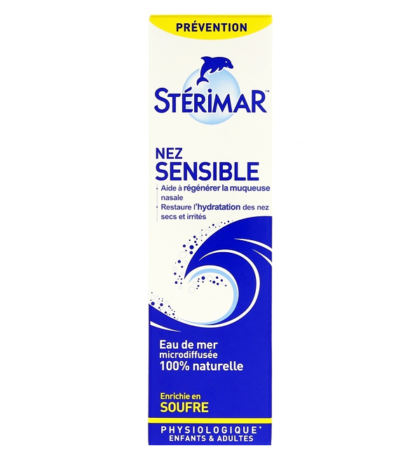 Stérimar Soufre Nez Fragilisé 100 ml est un dispositif médical spécifique qui contribue à régénérer les cellules de la muqueuse nasale, grâce à sa solution d’eau de mer physiologique enrichie en soufre.